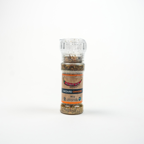 Unleash a burst of bold flavor with Wizard Grinder, Fat Chili Farm’s must-have seasoning blend for spice lovers. This enchanting mix combines dried habaneros with a spellbinding blend of herbs, spices, garlic, and a twist of lime, crafted to elevate everything from pasta and rice to grilled meats and veggies.
